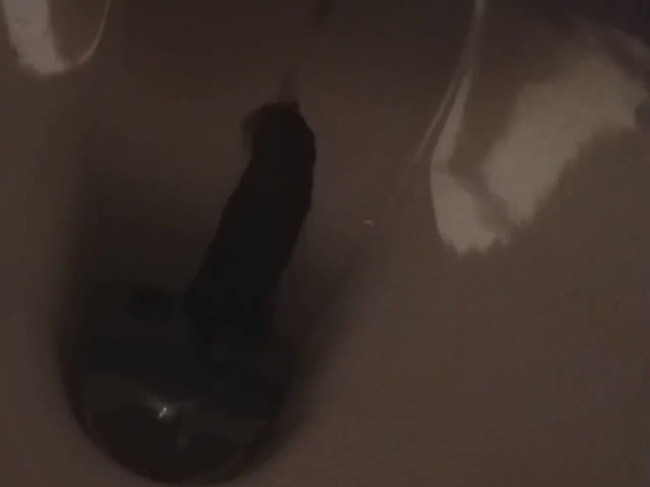 Ebony woman shit and piss on the white plate