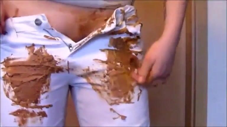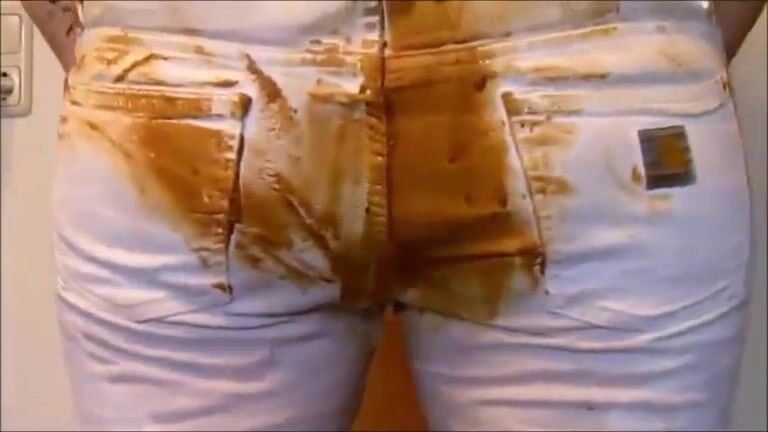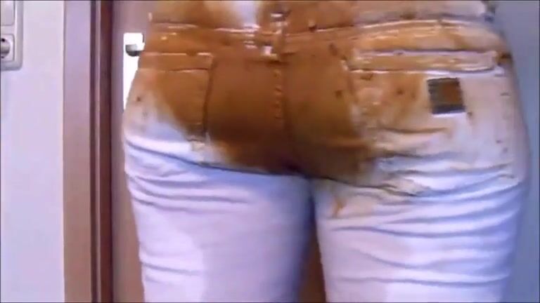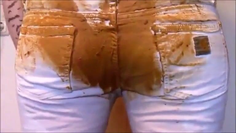 Girl shitting in white jeans