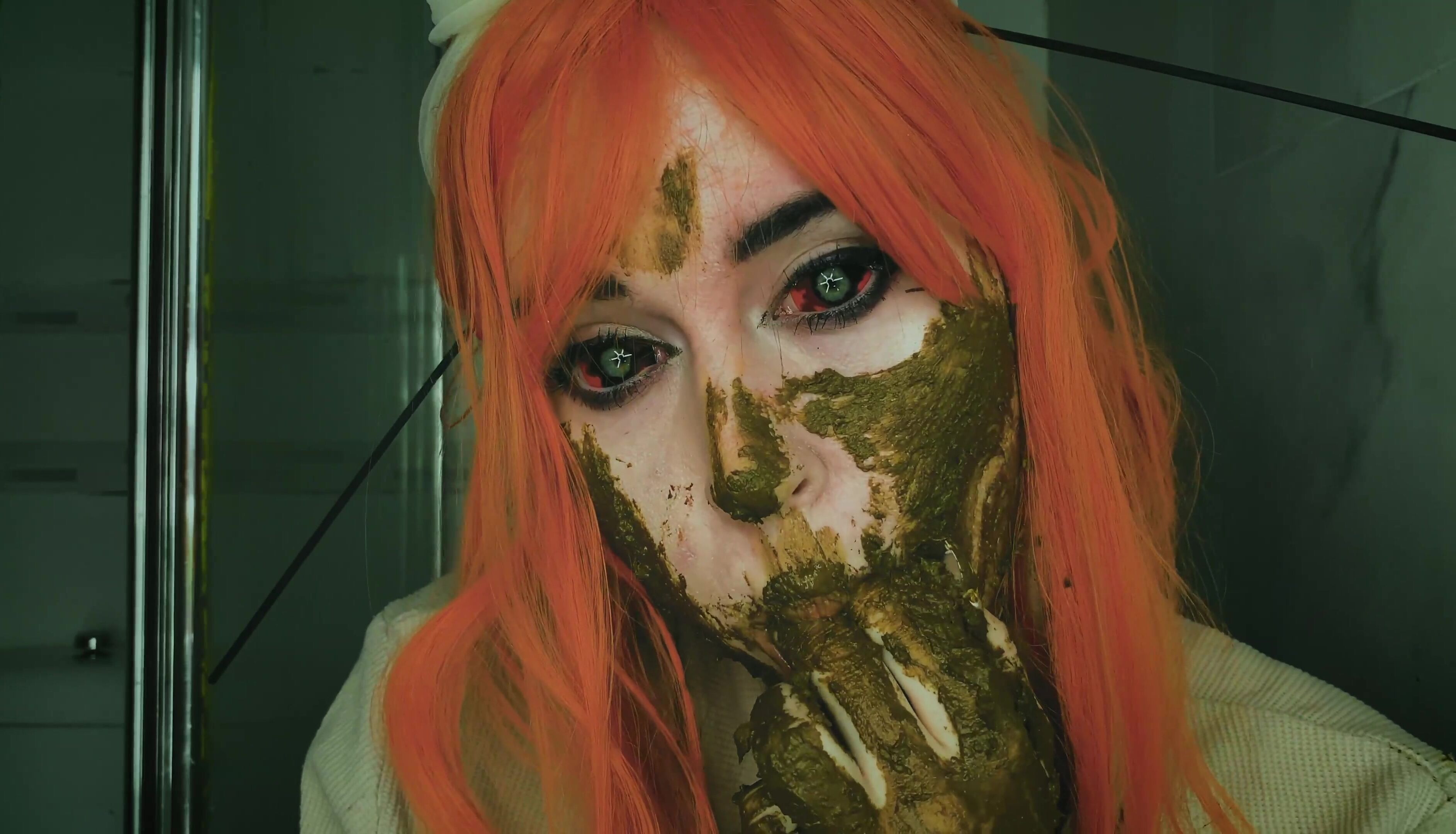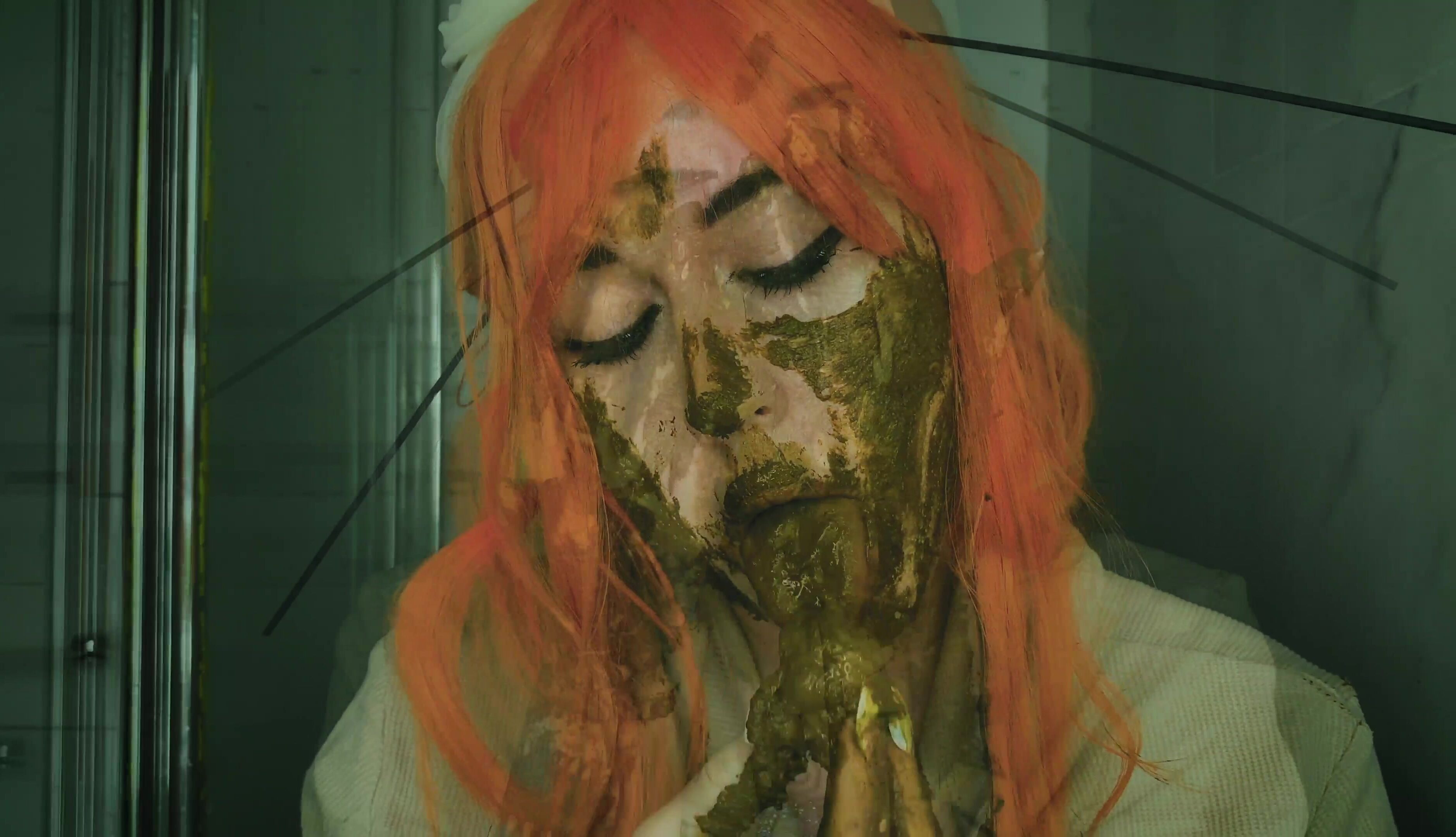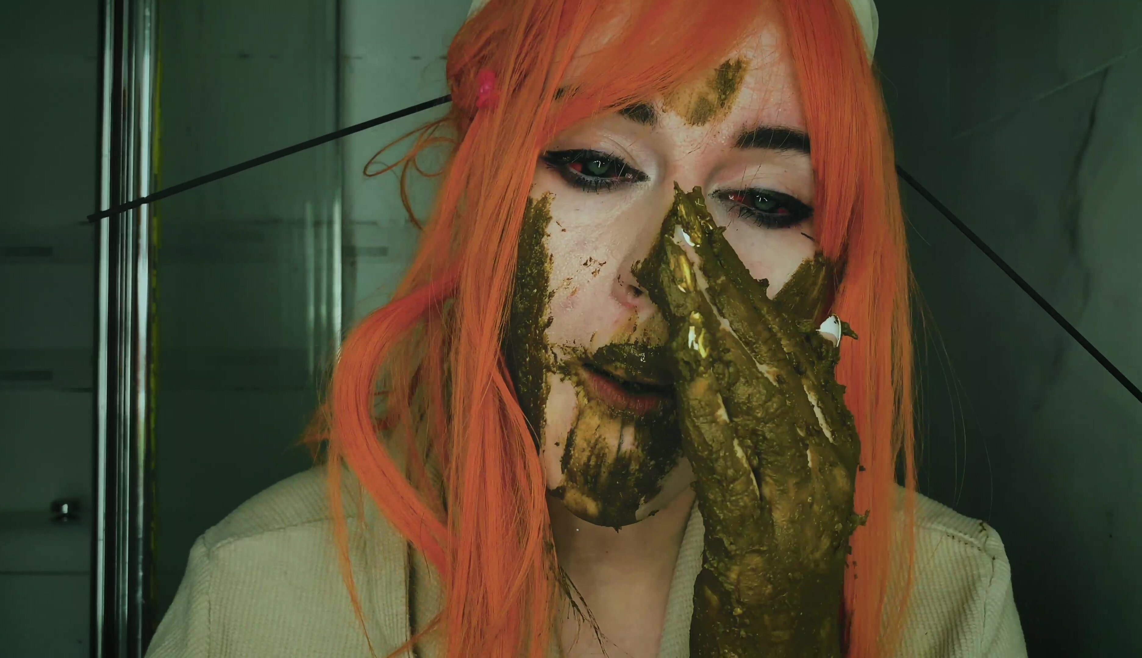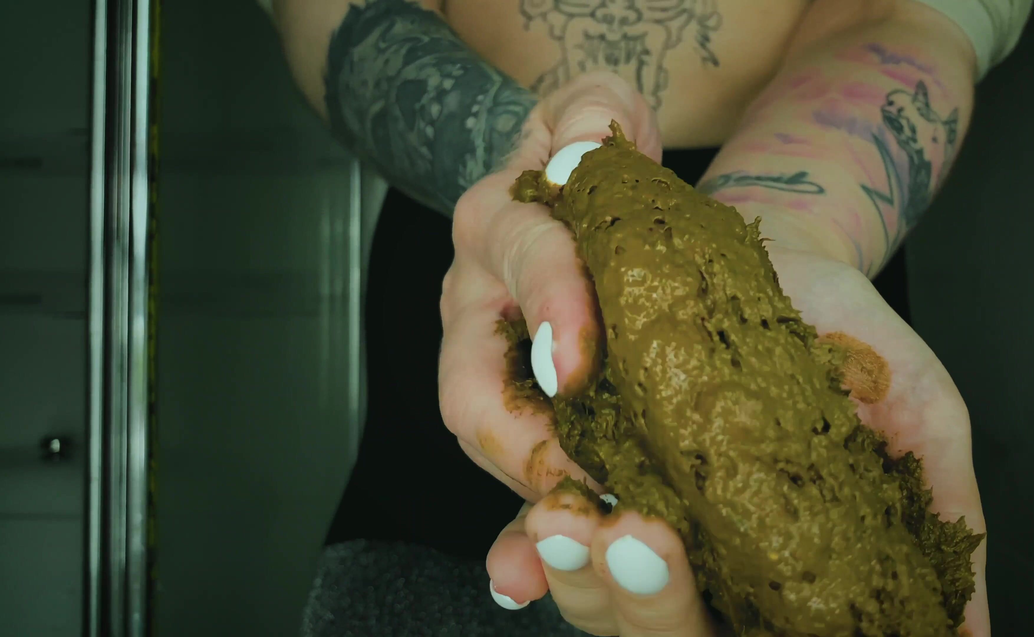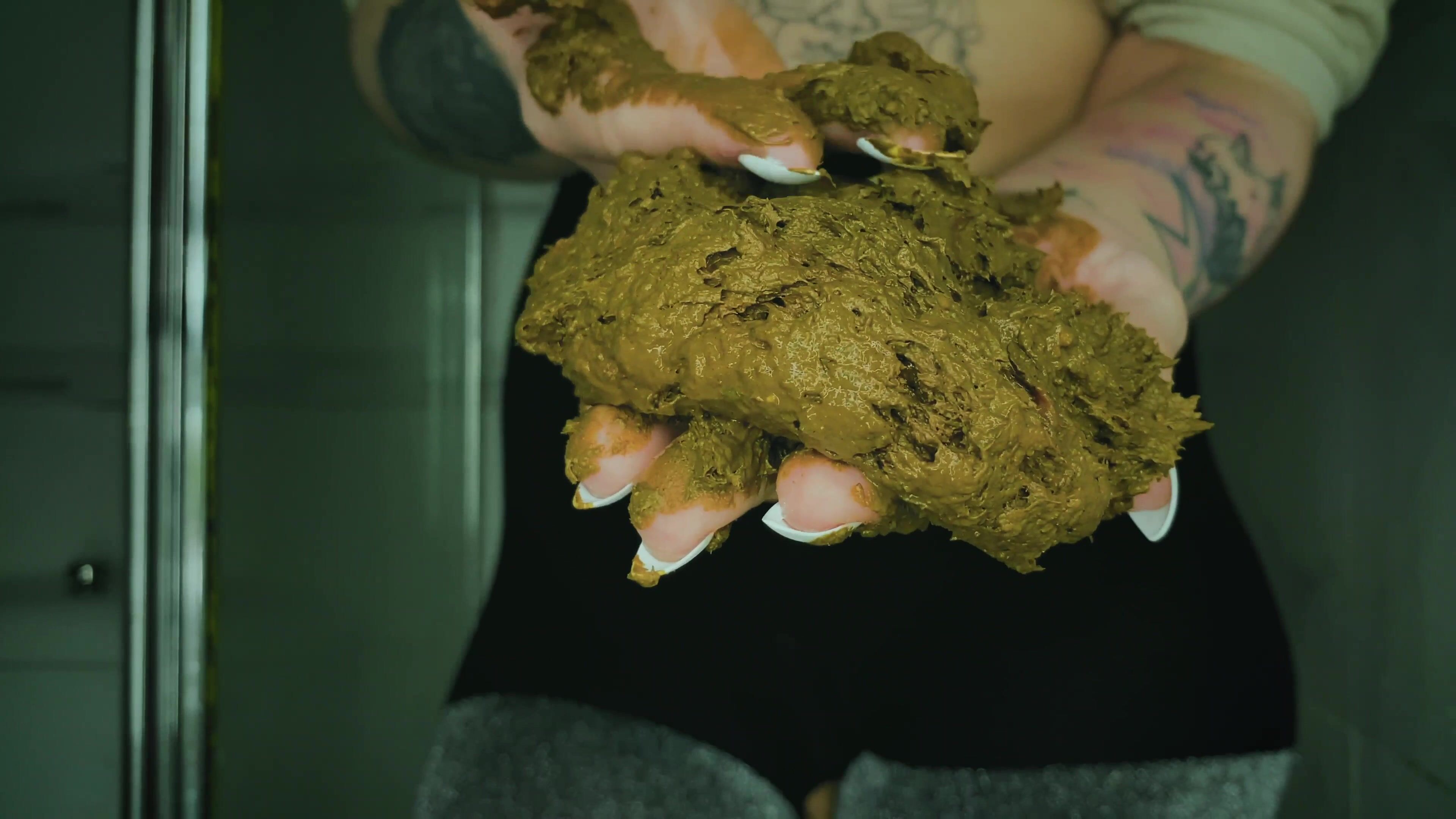 Dirty scat performer plays with her shit in the bathroom