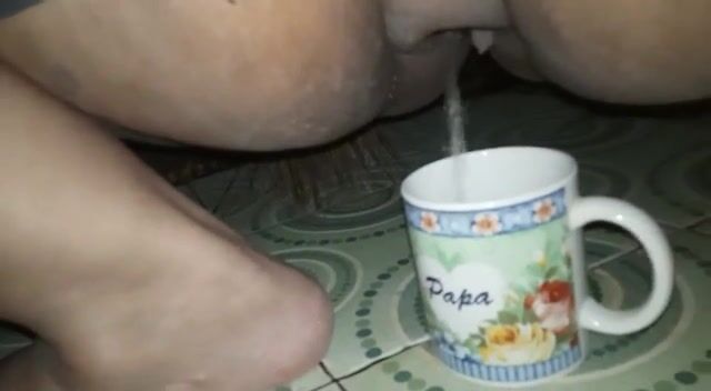 asian shitting in a jar