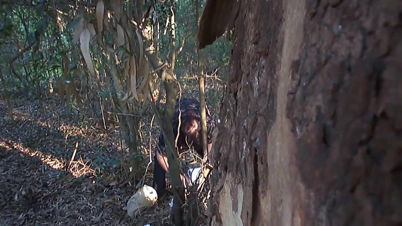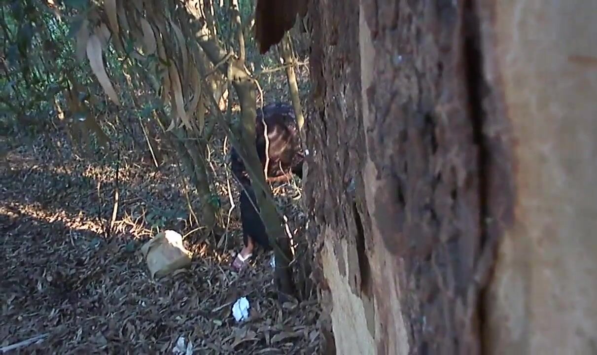 Latina lady shits outdoors, shows TP