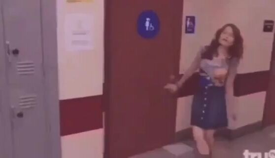 Girl open wide legs and shitting on the toilet floor