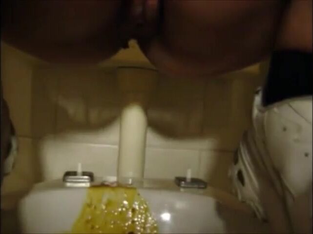 gorgeous brunette craps and pees - video 3