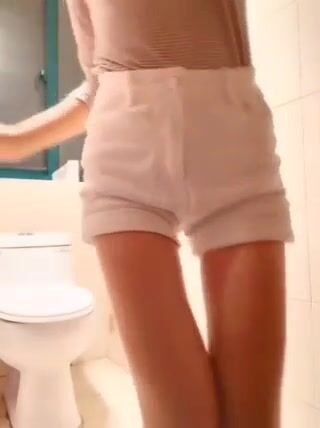 Hot thin babe shits on her floor