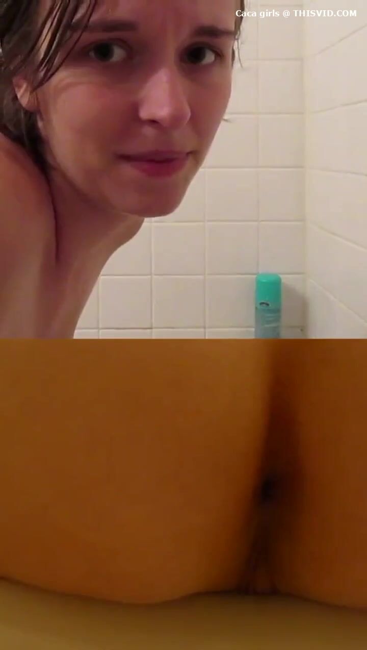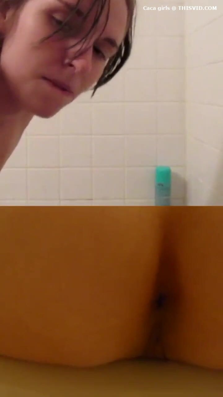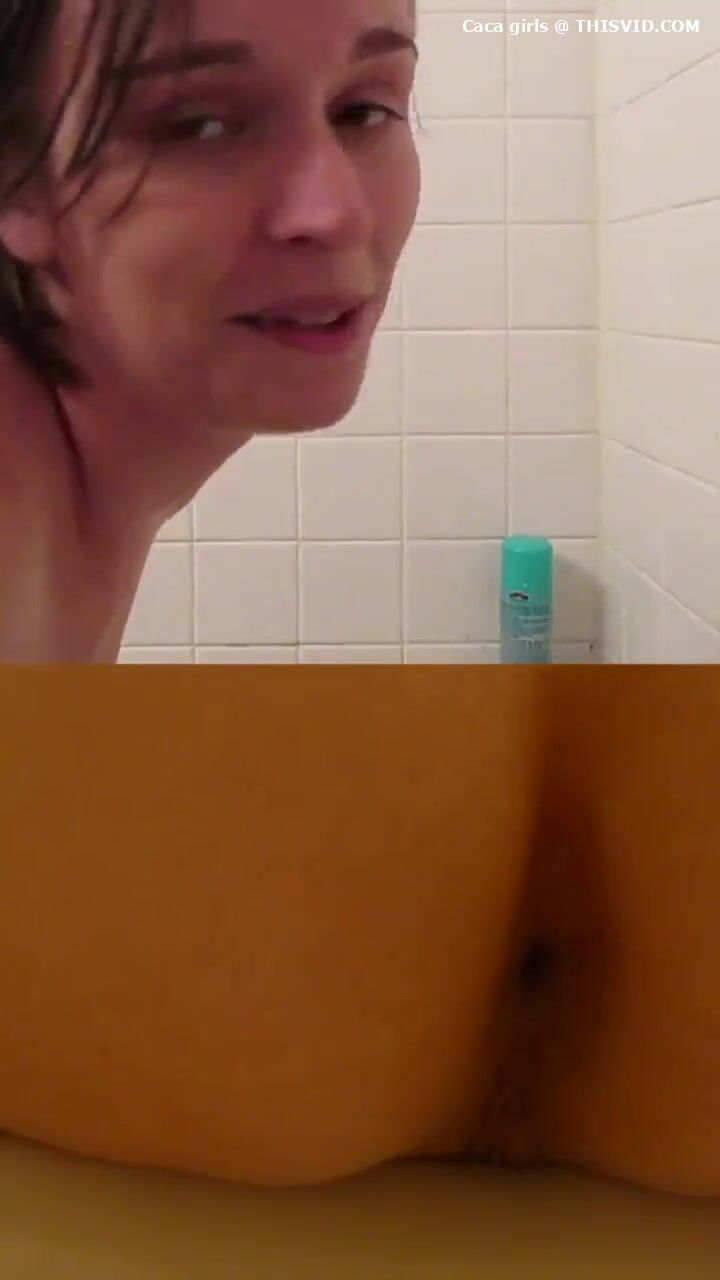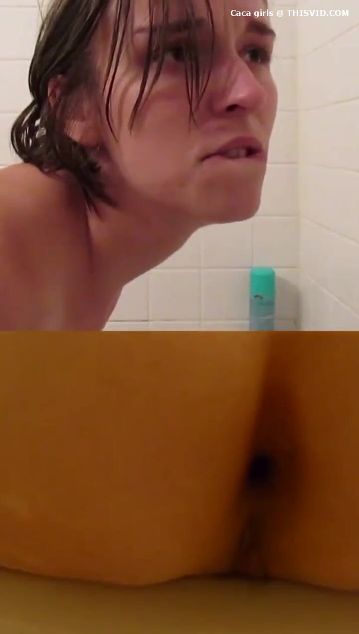 Chubby lady poops under the shower..