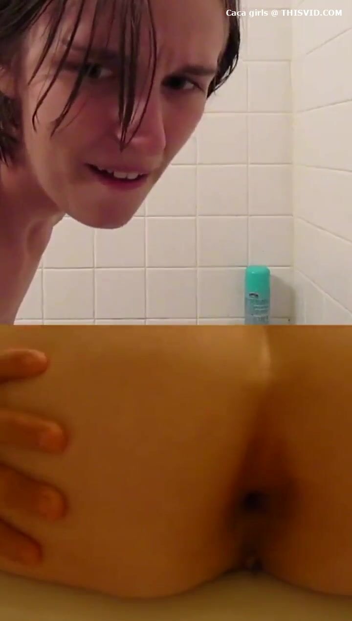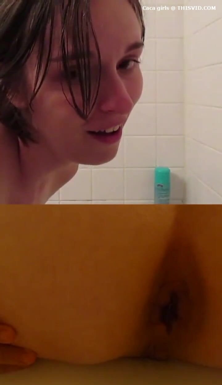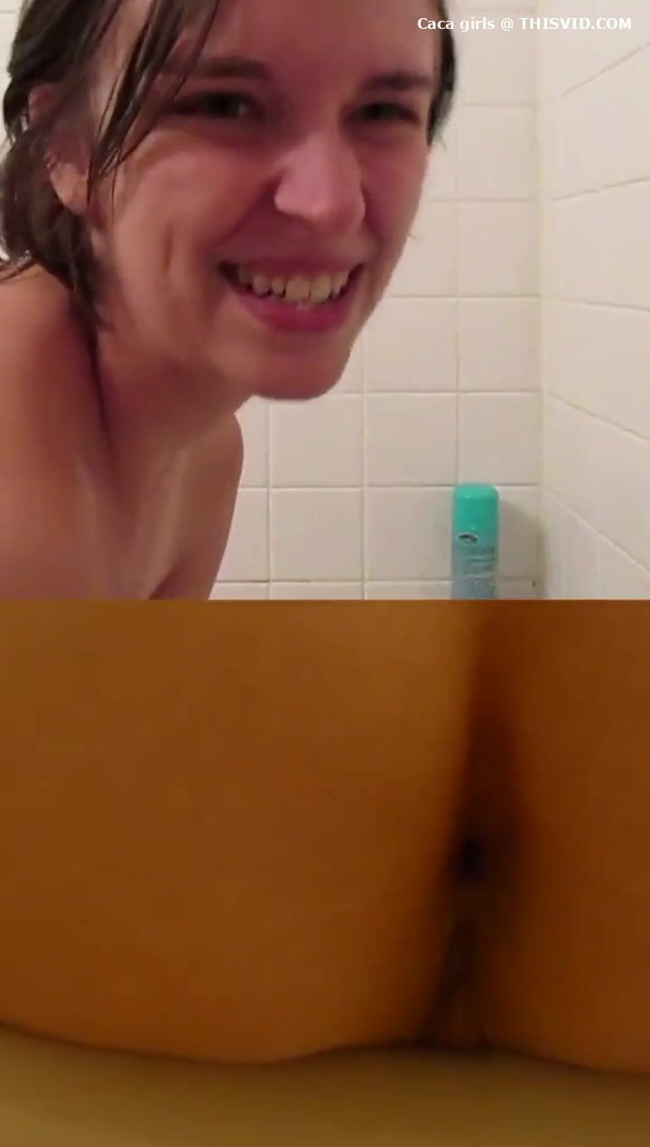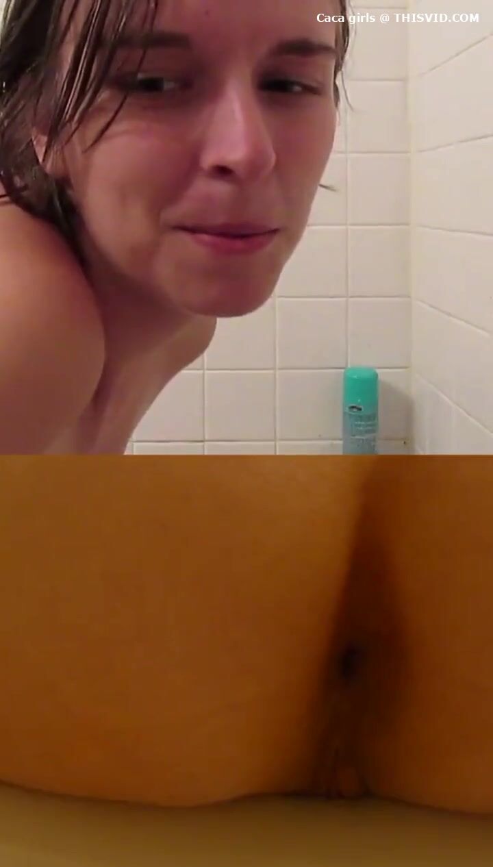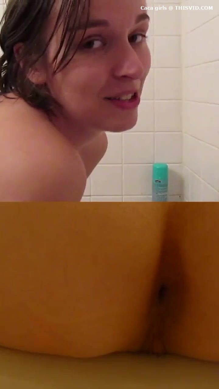 Chubby lady poops under the shower..
