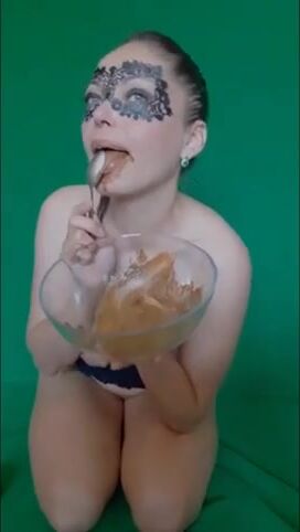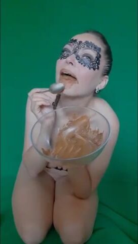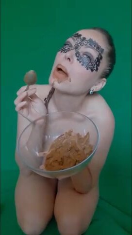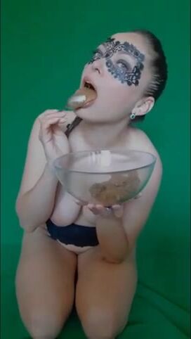 Lucky slave eating his mistress shit as breakfast