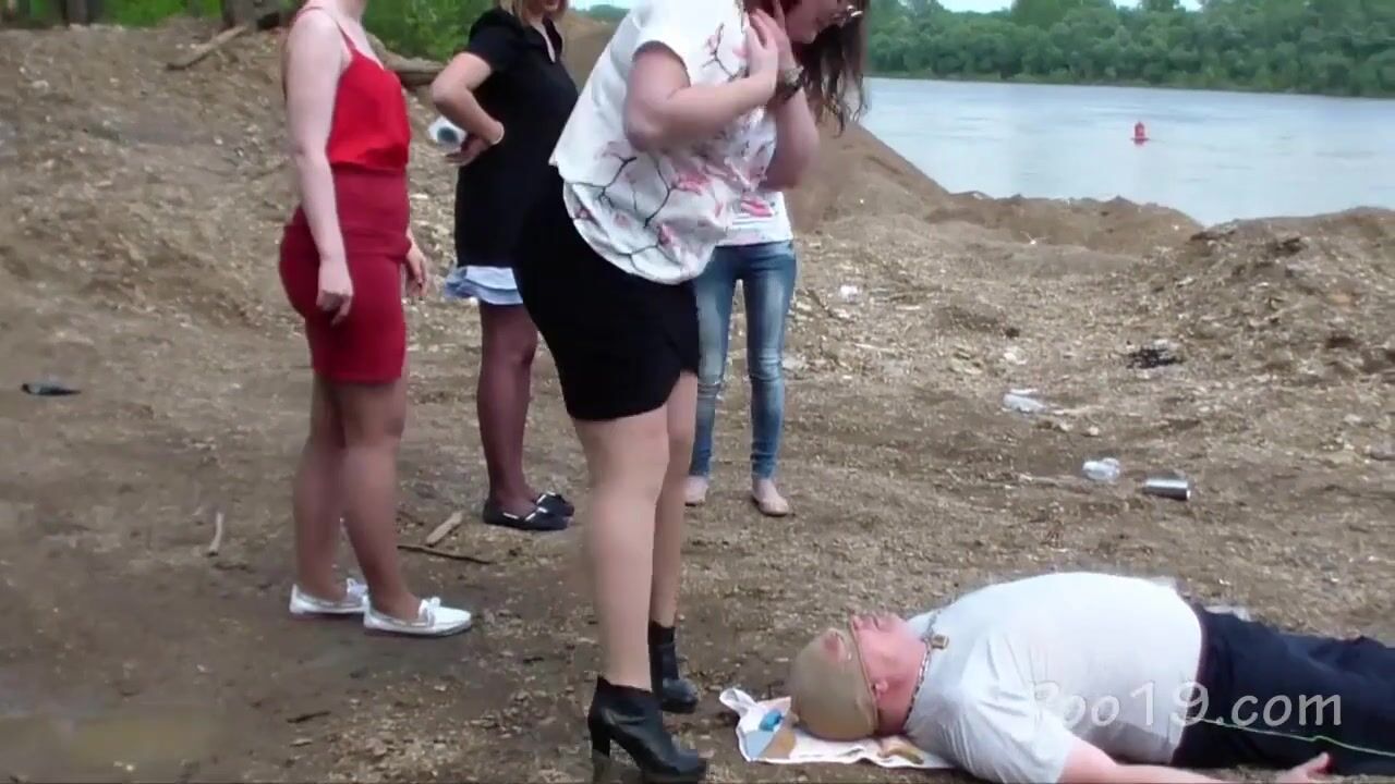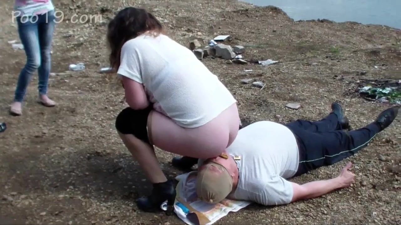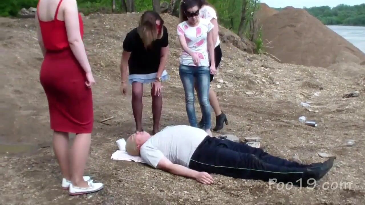 girls caught a man on the beach and pooped in his mouth