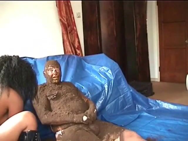Ebony mistress makes slave rub her shit on himself