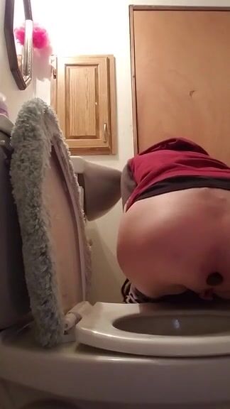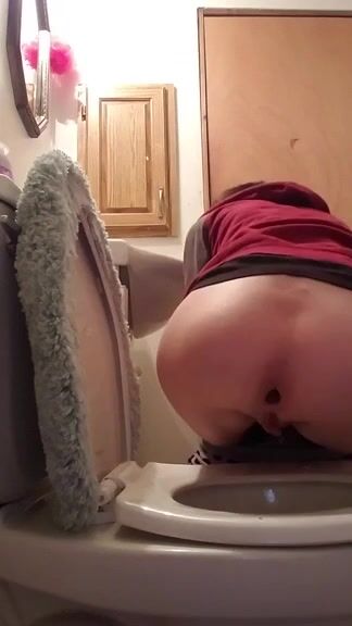 Teen girl big poop toilet