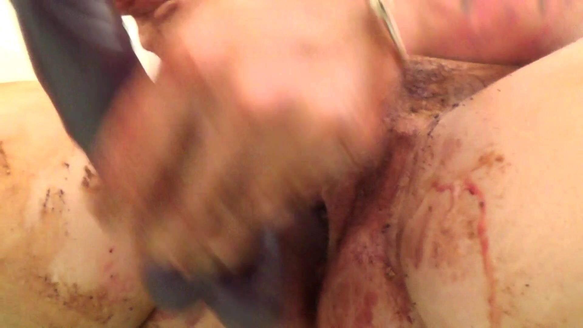 Girl smear herself full with shit and fucks her wet pussy