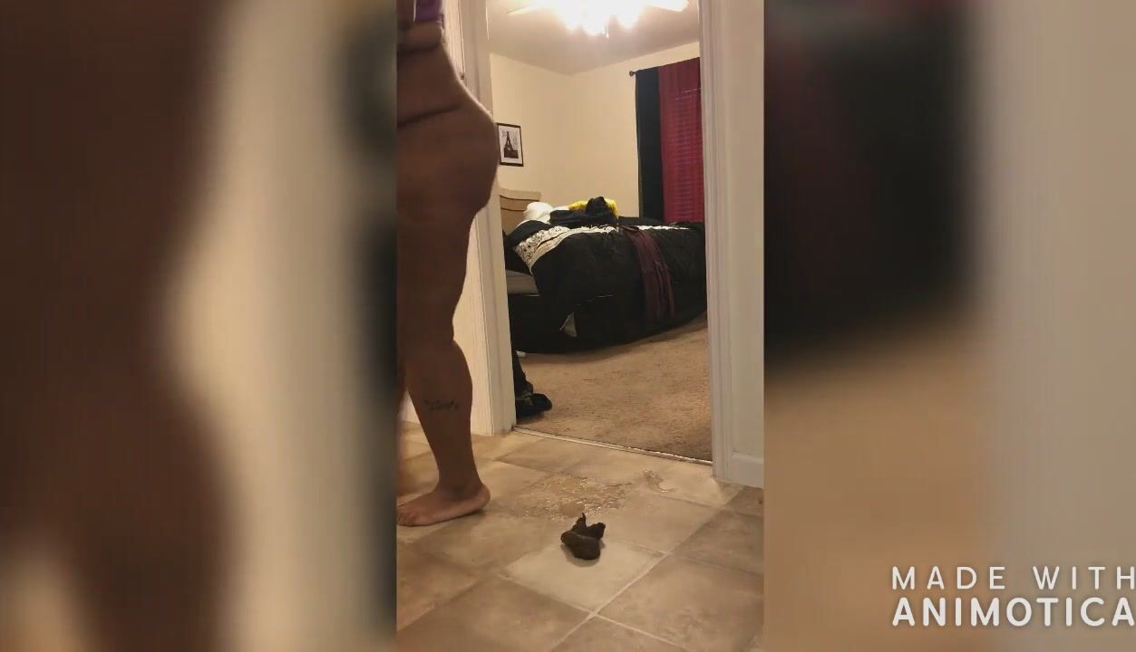 Ebony woman shit and piss on the white plate