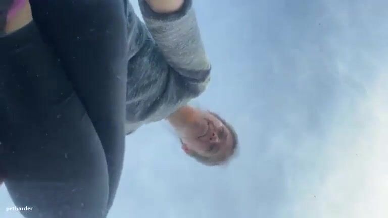 Amateur lady pooping on a car windshield