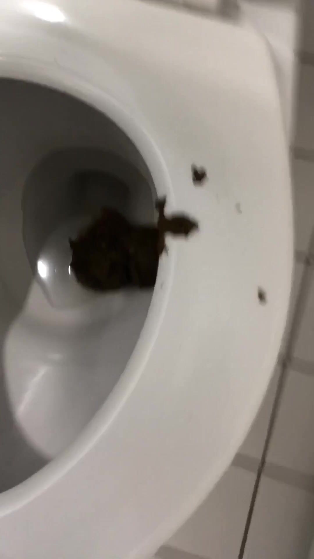 Girl open wide legs and shitting on the toilet floor