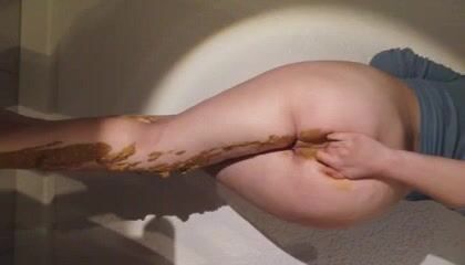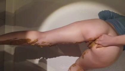 Girl shitting in the shower and smering it on body
