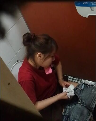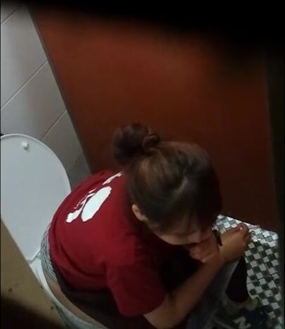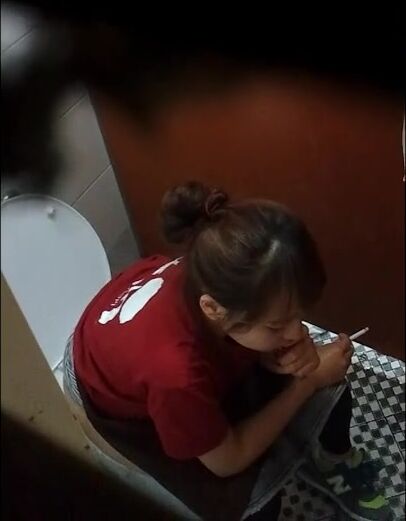 short caught hair peeing after waitress pooping with smoking