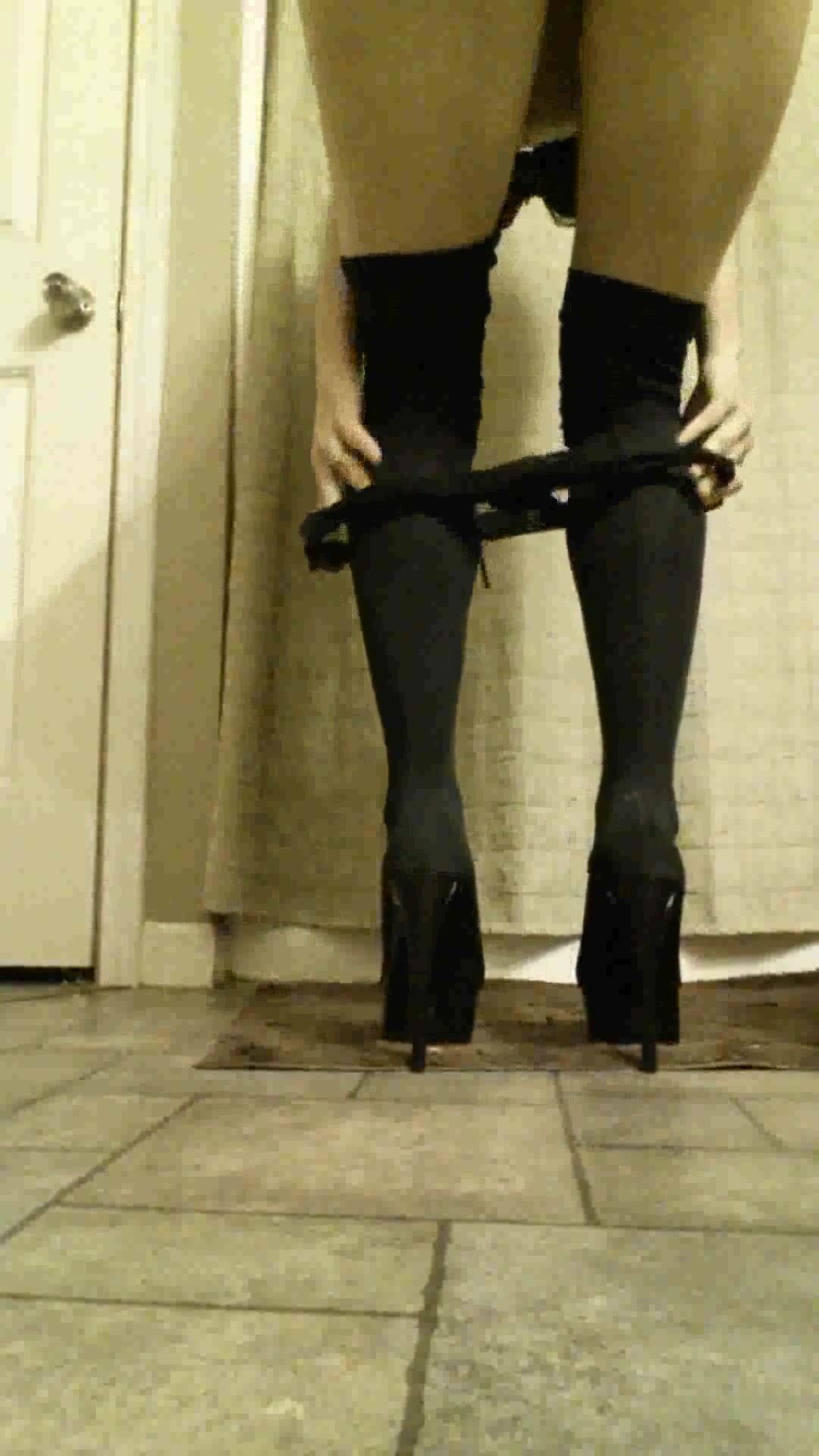 Big ass lady in high heels shit and piss