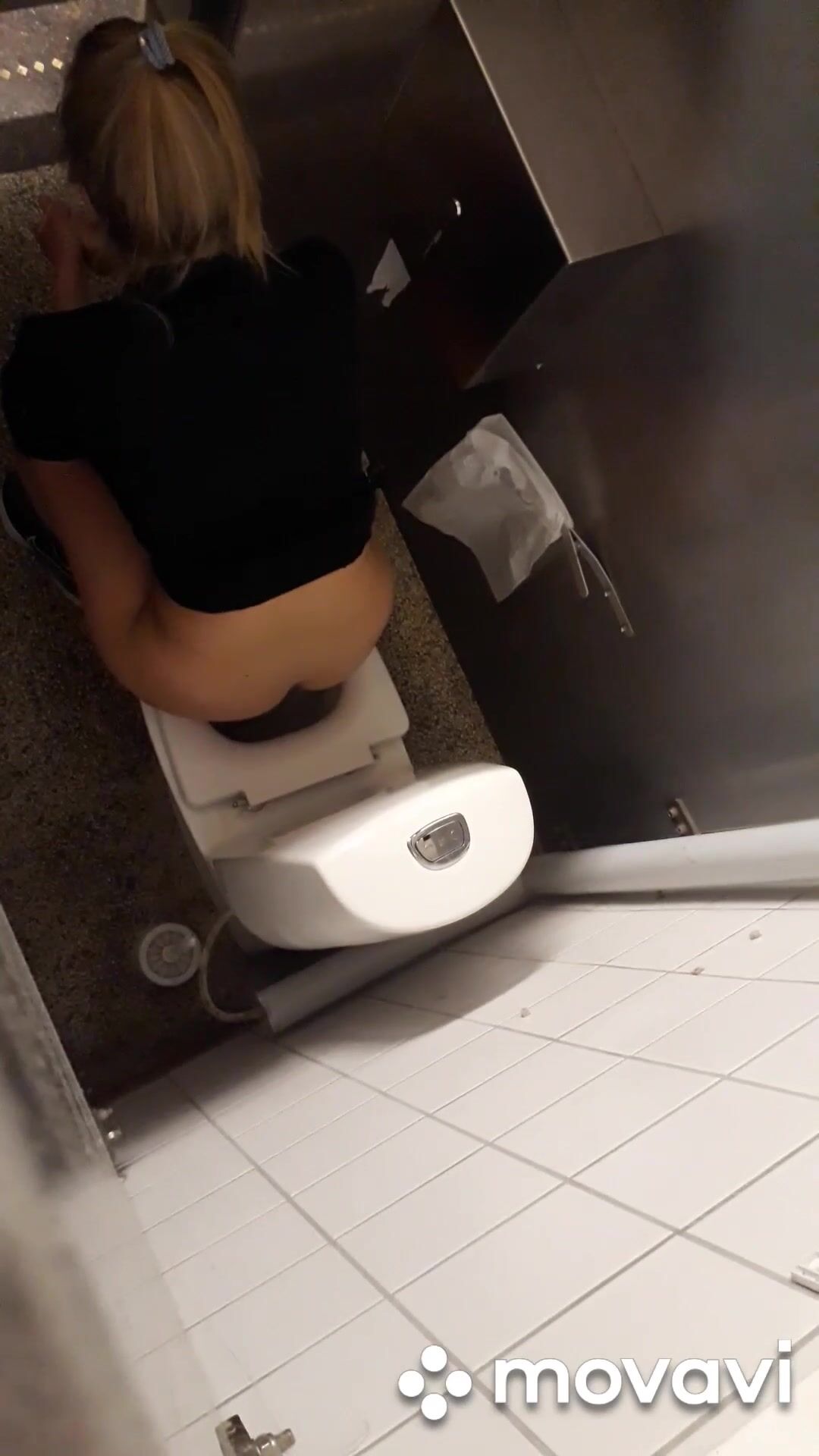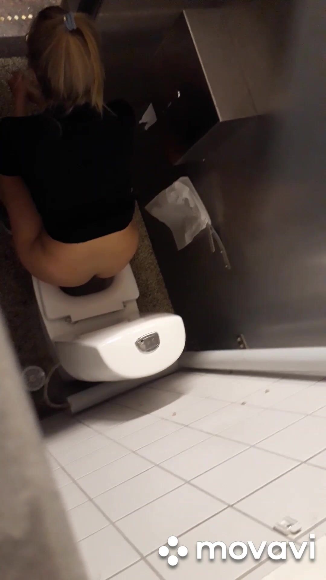Girl pooping in public restroom