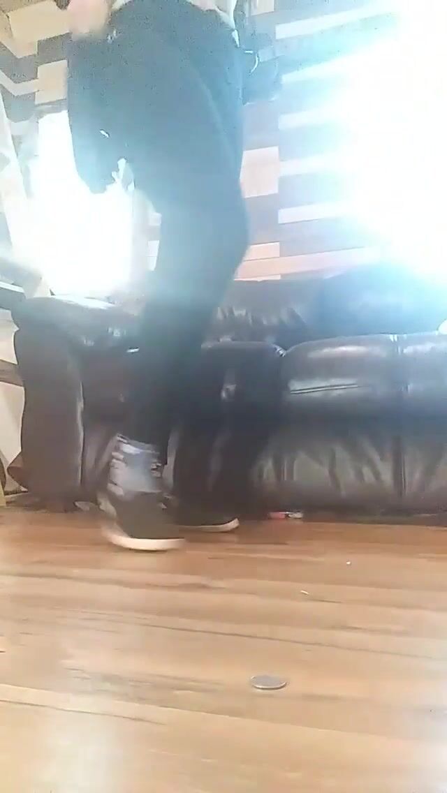 Ebony BBW shits pisses on couch