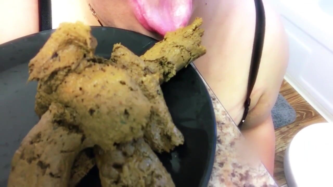 Lucky slave eating his mistress shit as breakfast