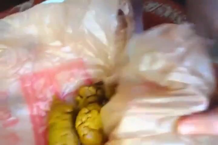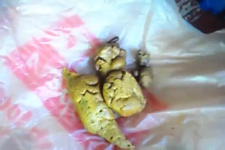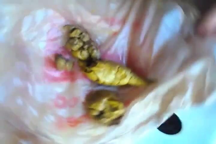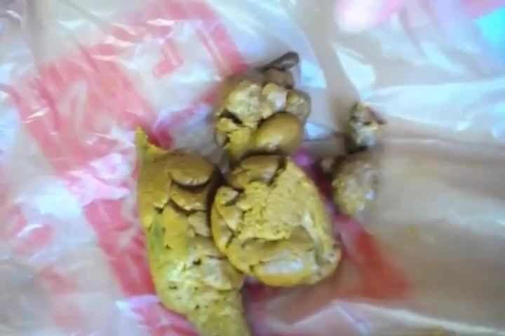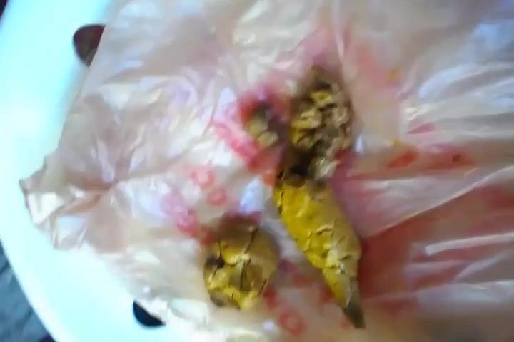 Girl poops on a plastic bag