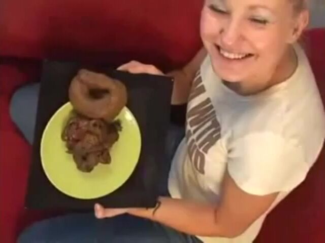 Masked blonde eating her own shit