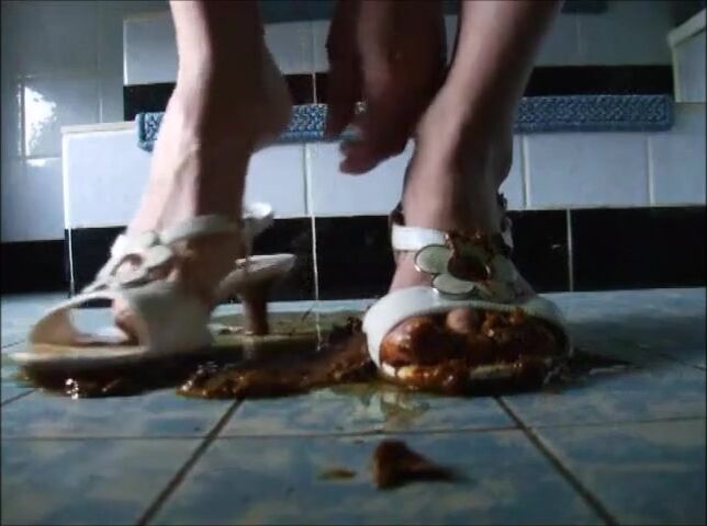 Girl shitting on sandals then wearing it