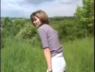 Pretty girl shitting outside