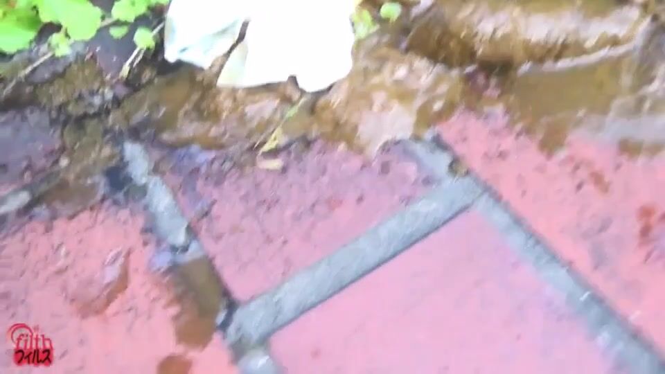 Girl open wide legs and shitting on the toilet floor