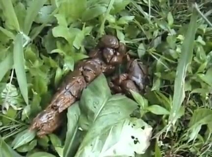 Japanese sports girl feeding poop for flies