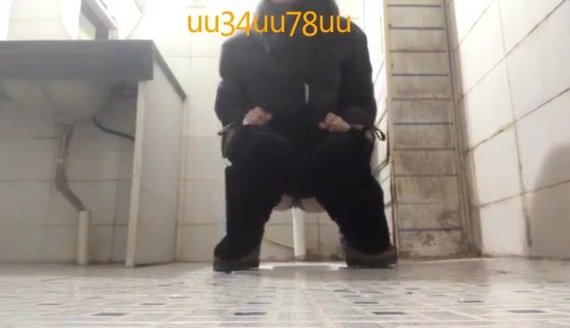 한 아시아 소녀가 화장실에서 똥을 싸고 있다.