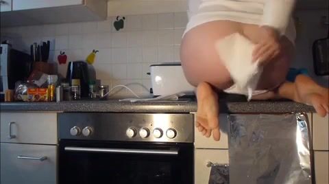 Dark-haired college slut spreading her thighs while nude so she can poop in this s...