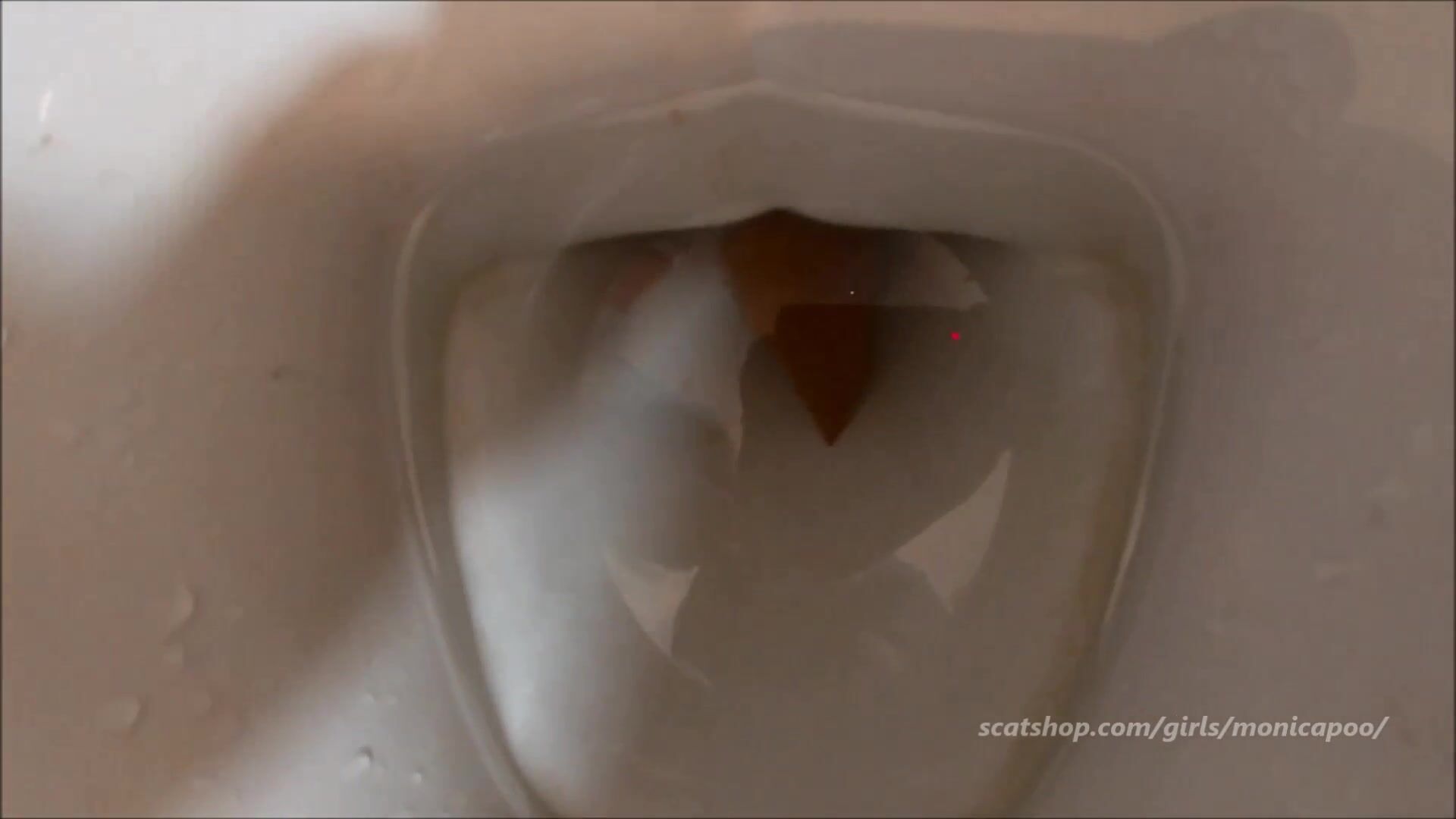 Girl open wide legs and shitting on the toilet floor