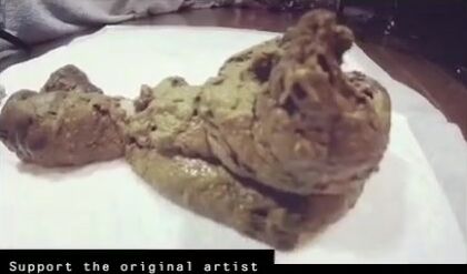 Smearing saved shit and fresh shit and stuffing it in