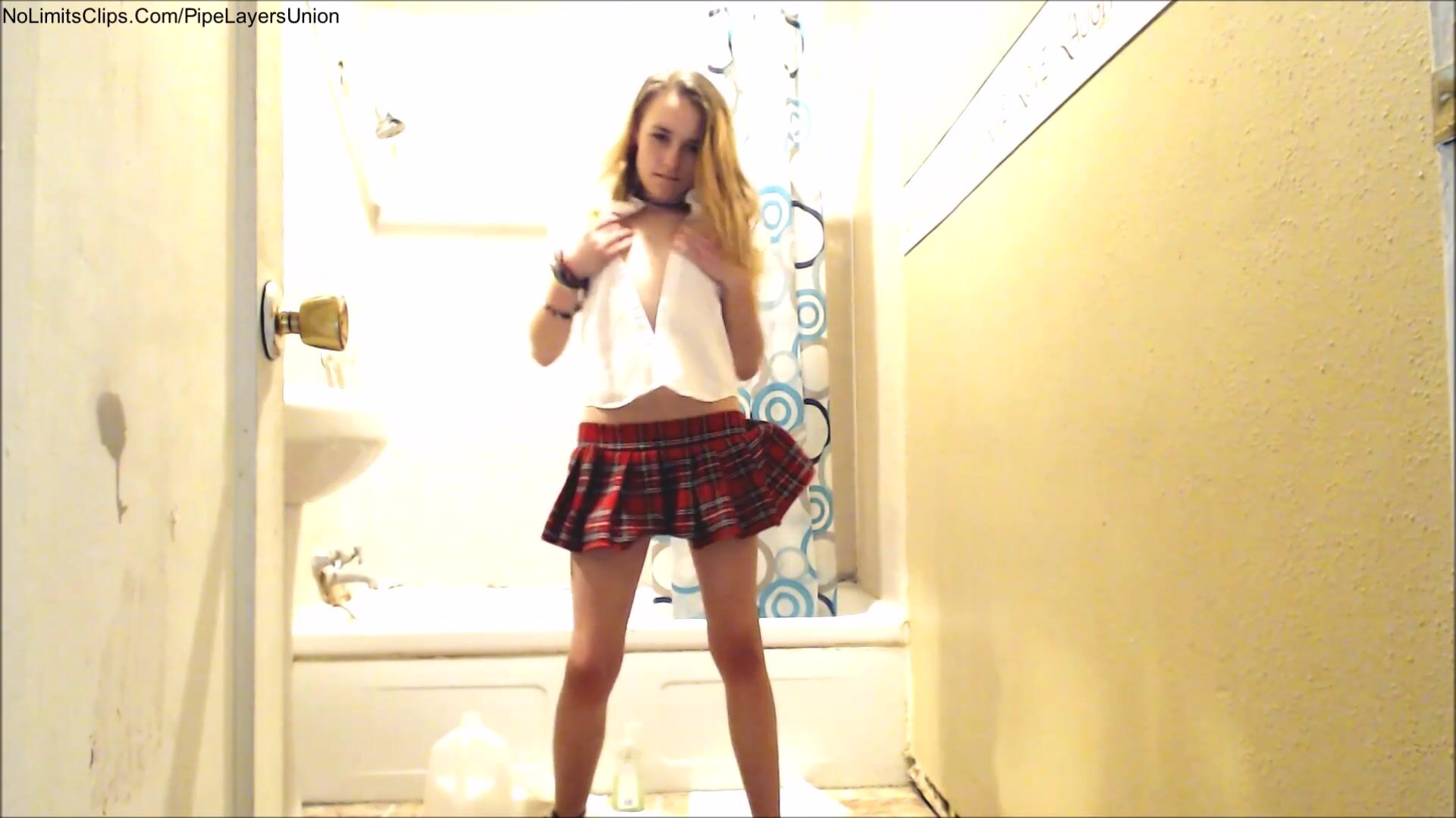 Blonde Teen Takes Off Her Shirt And Poops