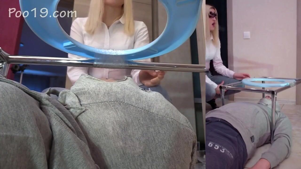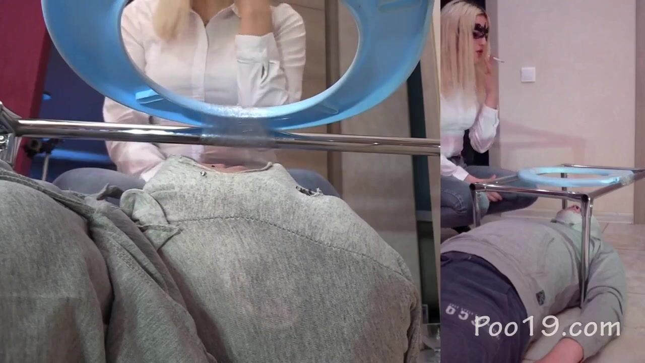 Lucky slave eating his mistress shit as breakfast