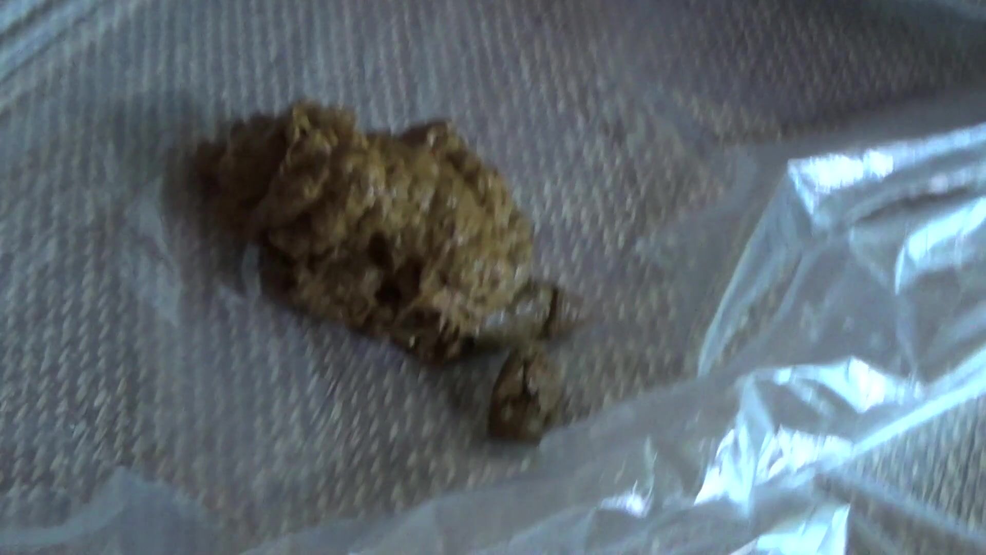 Woman on her side births huge turd.
