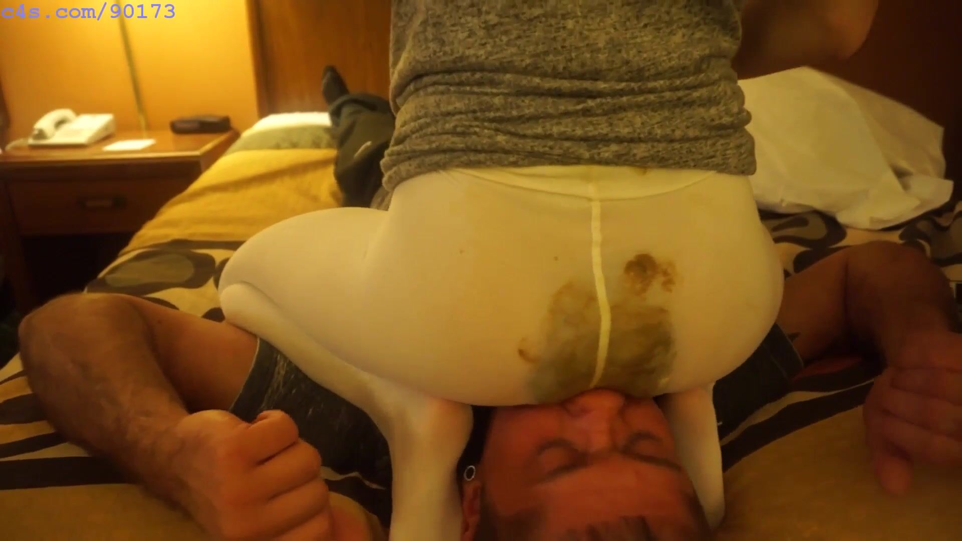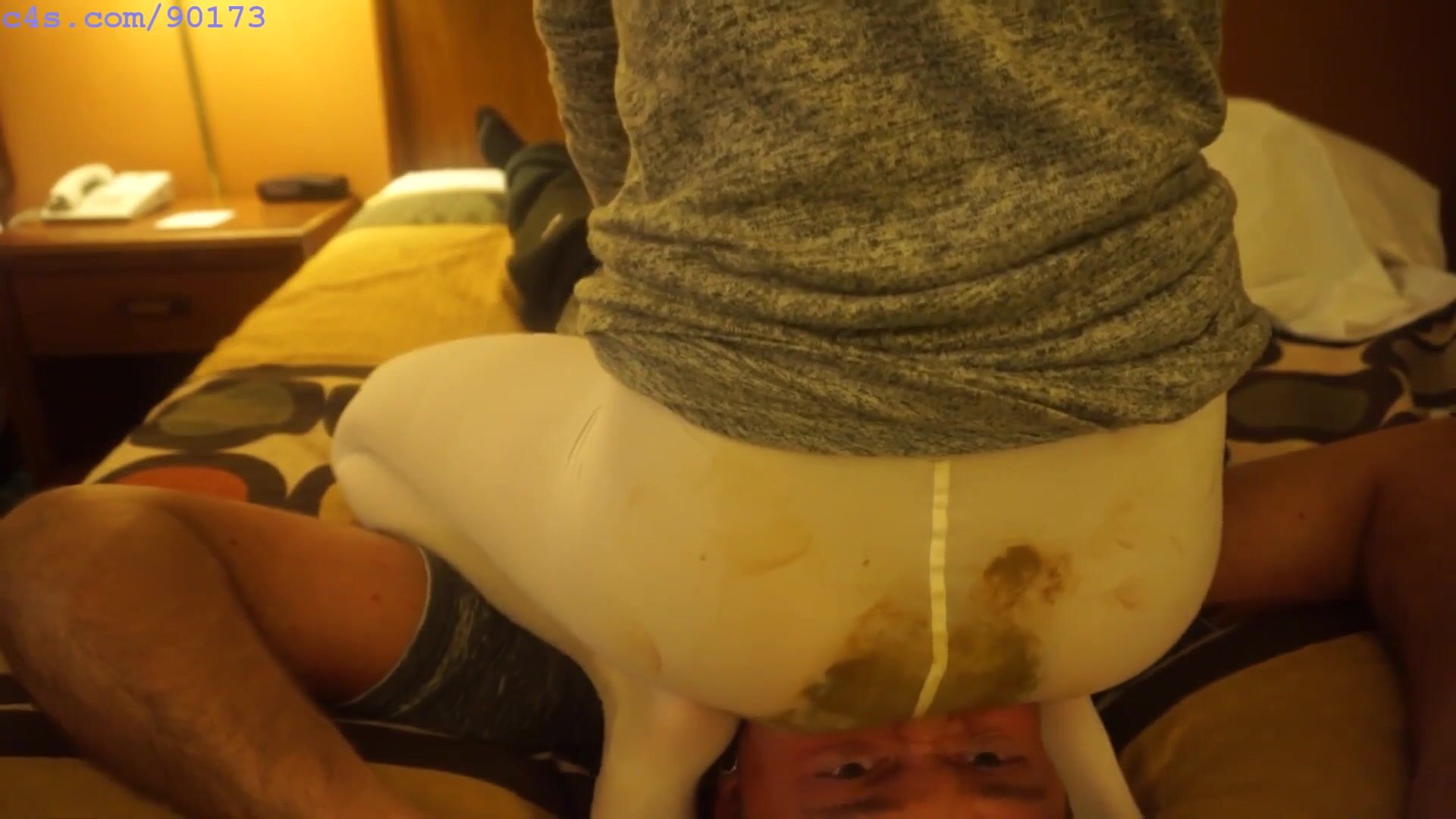 Sits on his face and shits in her white tights. VERY HOT VIDEO
