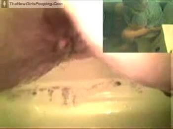 Hot thin babe shits on her floor