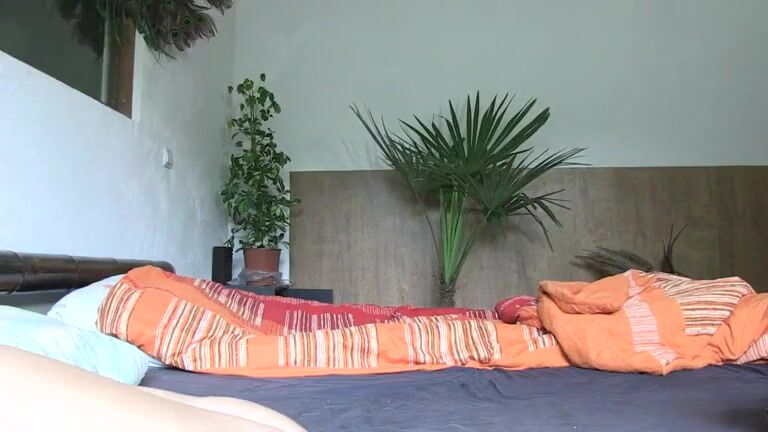 - on her bed