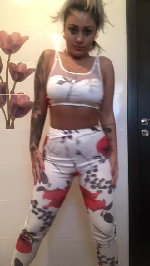 Beautiful blonde defecating on the floor