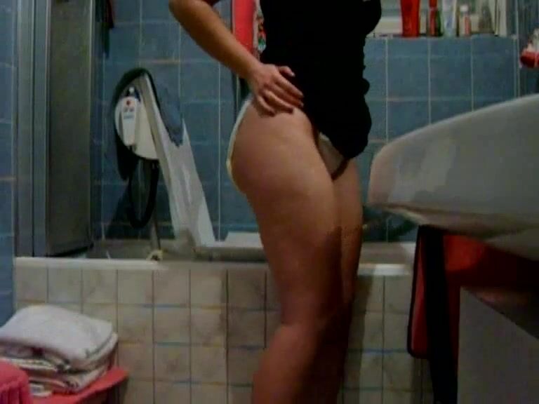Hot thin babe shits on her floor
