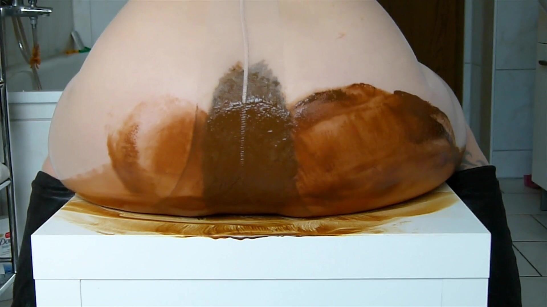 Girl shitting in the shower and smering it on body