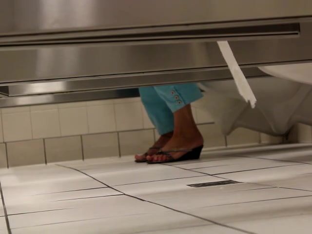 Pretty feet in red flipflops filmed as bowels are emptied in public toilet!