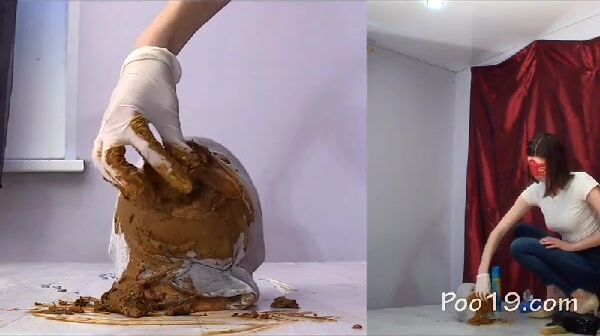 Asian girl tastes her shit