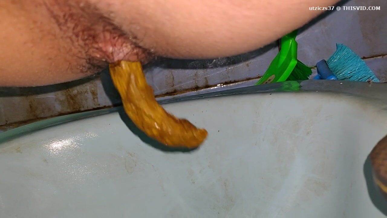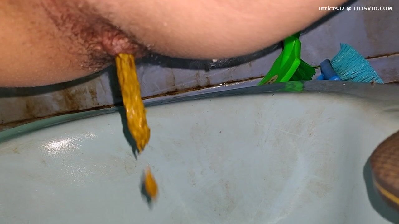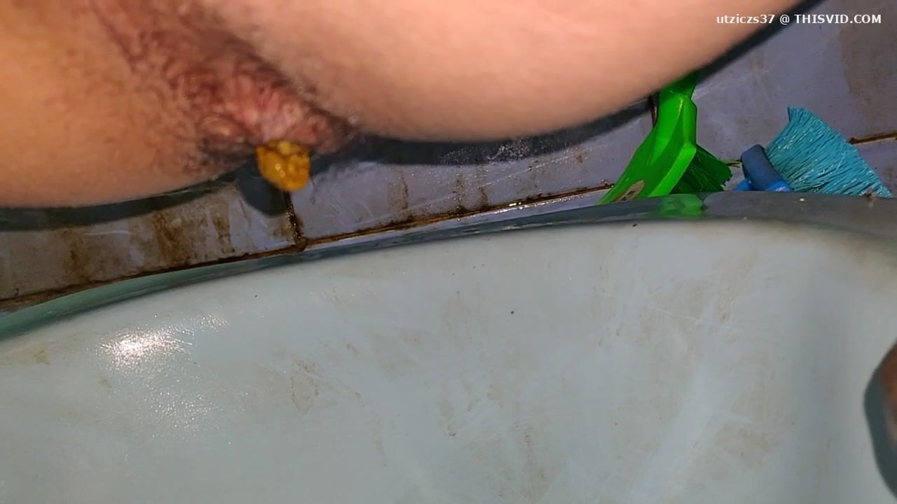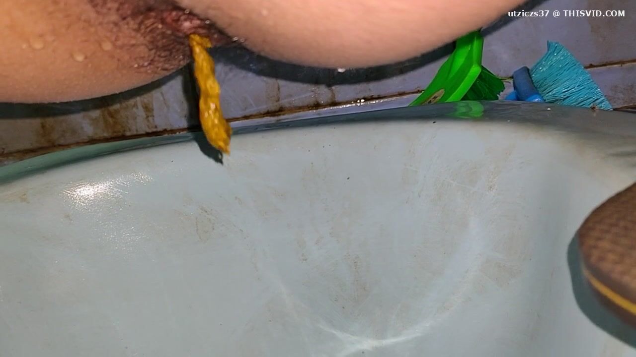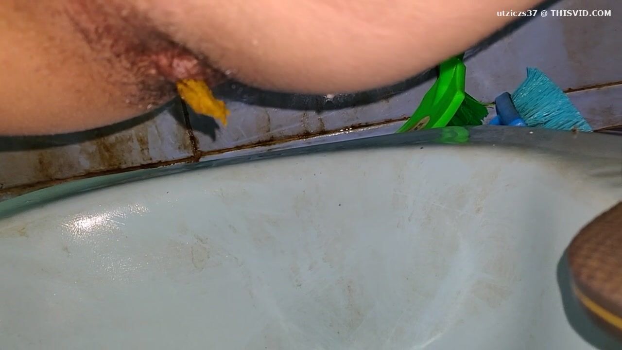 Girl open wide legs and shitting on the toilet floor