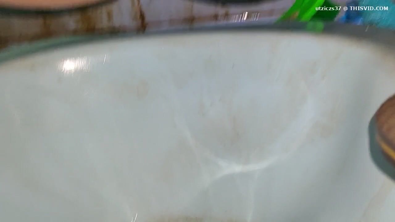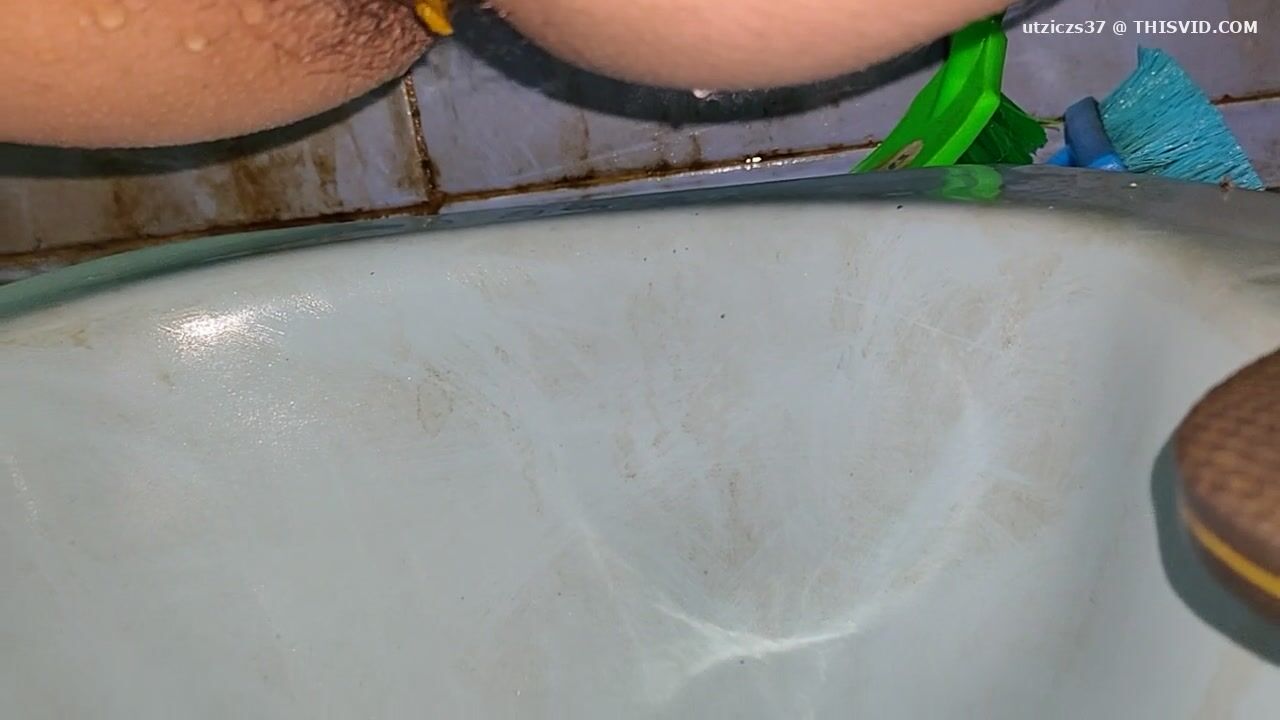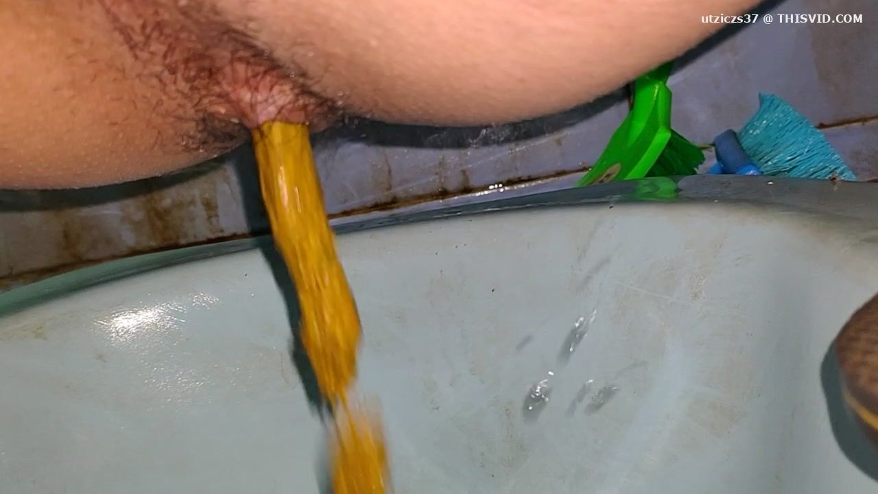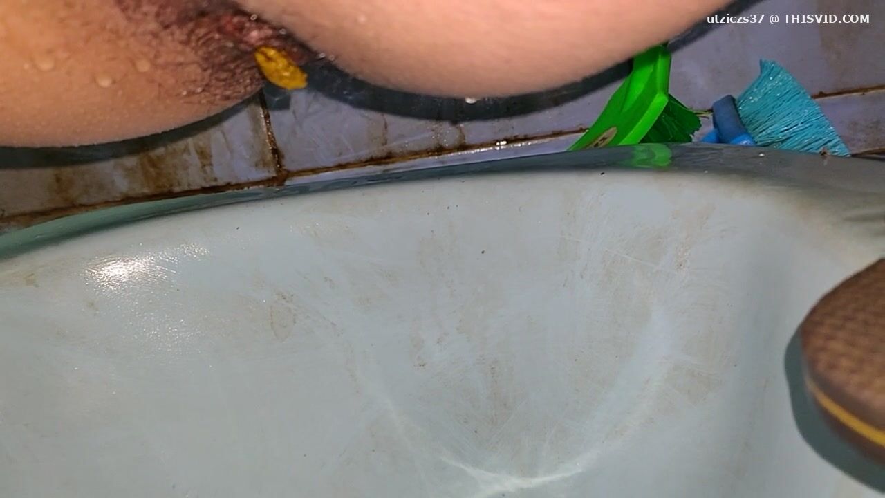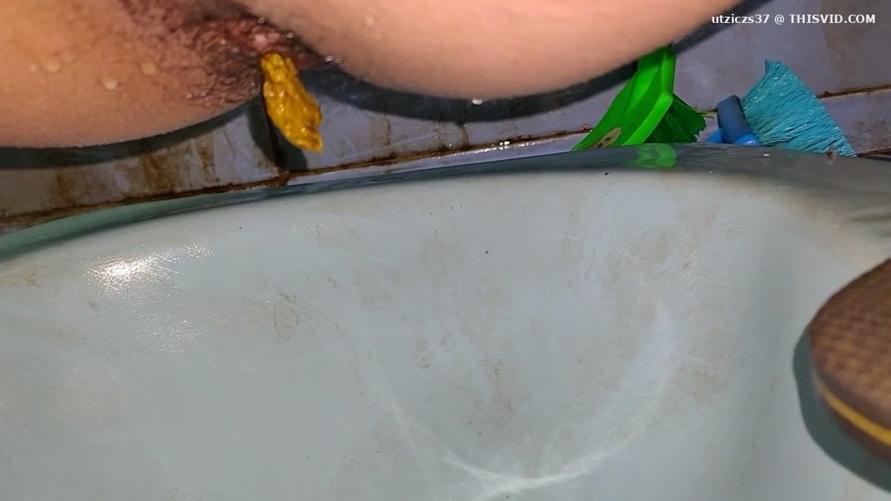Girl open wide legs and shitting on the toilet floor