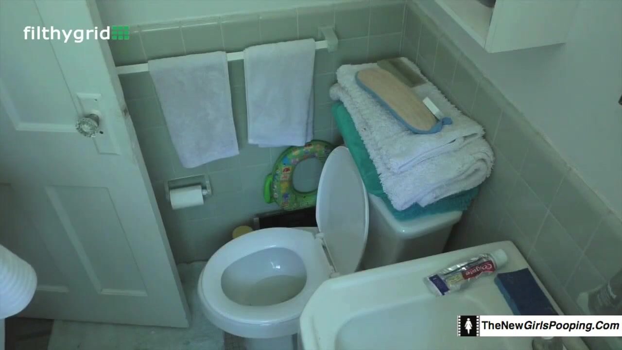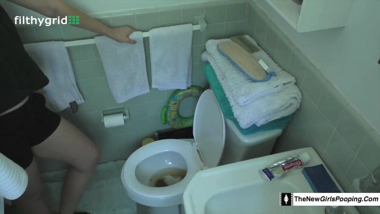 Hot college girl poops on toilet