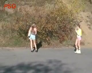 Two girls pooping in public
