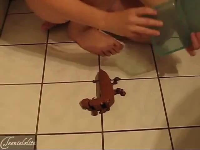 Blonde teen pooping a big load on the bathroom floor